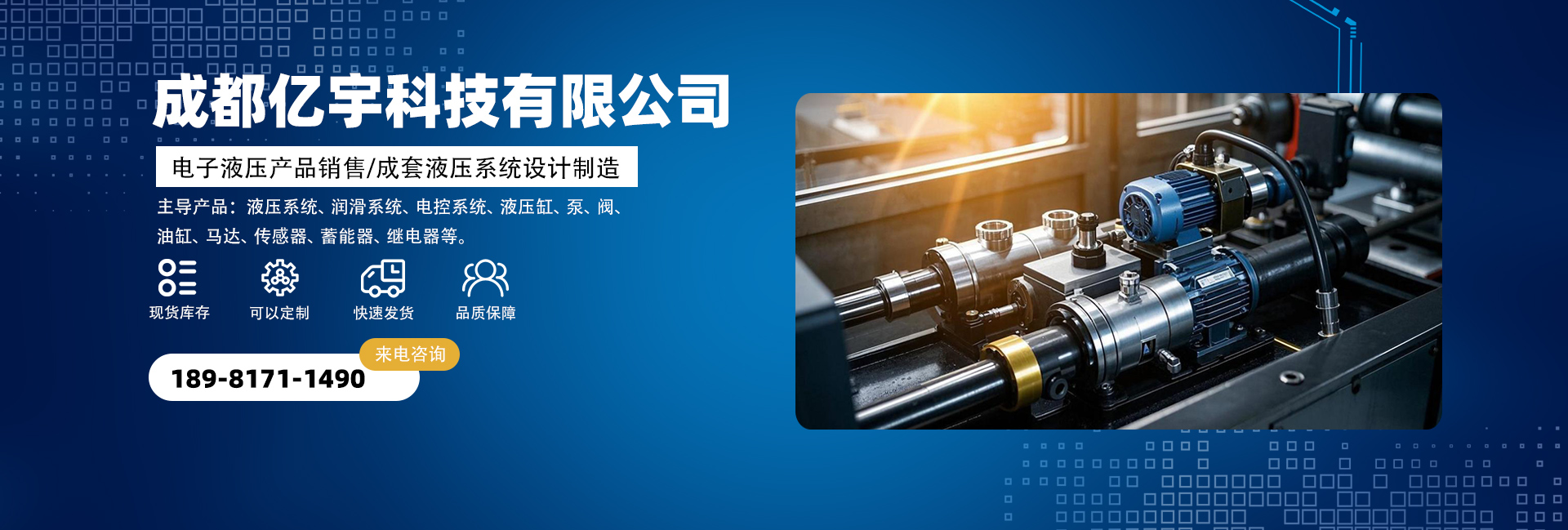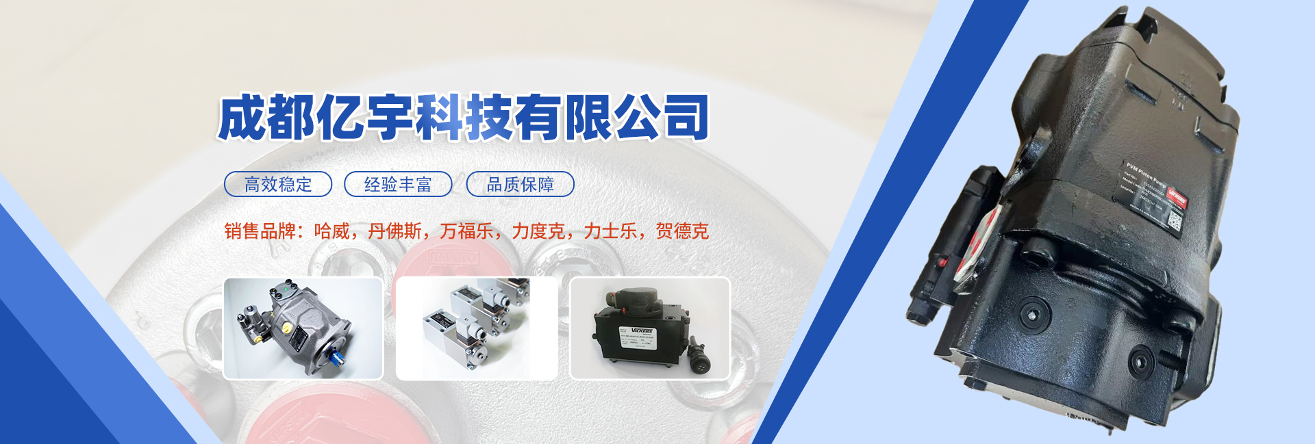 成都億宇科技有限公司是一家專業(yè)從事電子液壓產(chǎn)品銷售及成套液壓系統(tǒng)設(shè)計制造的高科技企業(yè)。 主導(dǎo)產(chǎn)品:液壓系統(tǒng)、潤滑系統(tǒng)、電控系統(tǒng)、液壓缸,泵,閥,油缸,馬達(dá),接頭,管件,傳感器,蓄能器,繼電器,密封圈等。同時擁有熟悉國內(nèi)外液壓機(jī)電產(chǎn)品的專業(yè)人員為您解決機(jī)械液壓方面的問題,并匯集了一批在流體傳動領(lǐng)域內(nèi)具有豐富實踐經(jīng)驗的專業(yè)技術(shù)人才,致力于各種高品質(zhì)液壓產(chǎn)品及系統(tǒng)的研制工作。經(jīng)過我們不懈的努力發(fā)展和創(chuàng)新,已與眾多國內(nèi)外供應(yīng)商建立了良好的合作關(guān)系,在價格及供貨周期上均有較